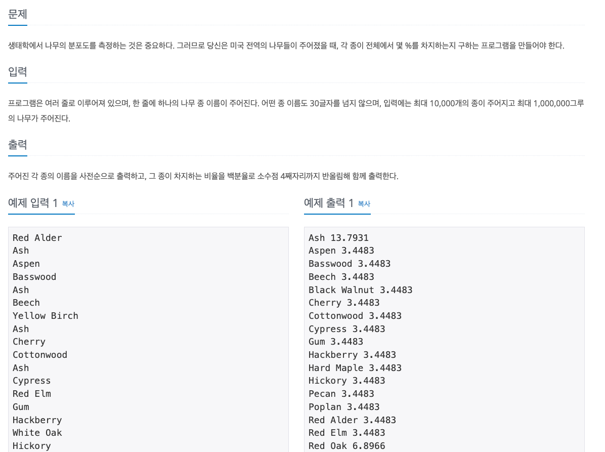1. 한 줄에 하나의 나무 종 이름이 주어진다.